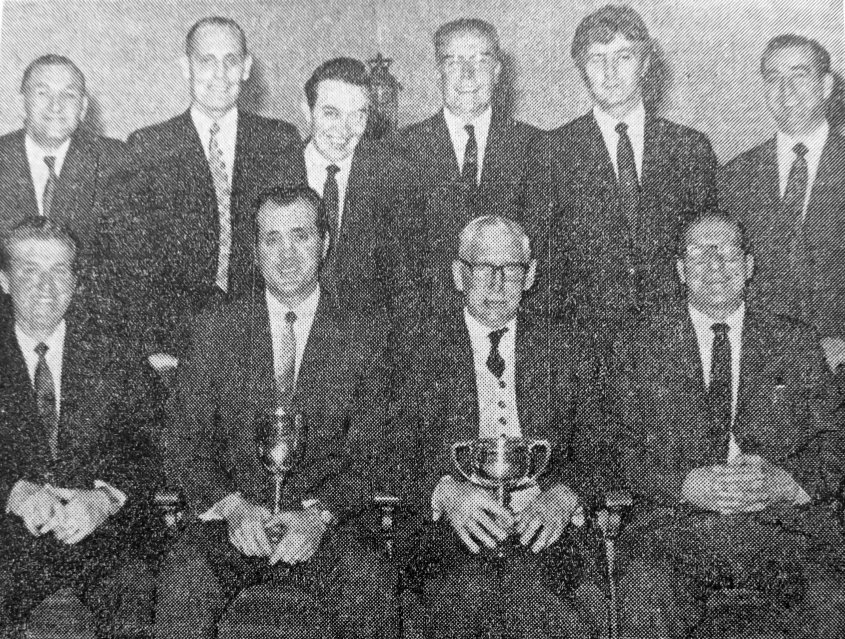 Members of Hickleton Main Bowls Club “A” team, winners of the Doncaster “A” section for the second consecutive year and winners of the Doncaster challenge cup, pictured at their annual dinner-dance at the Welfare Hall, Goldthorpe, last Saturday